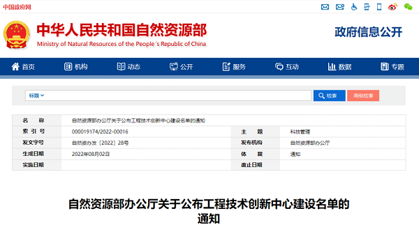 8月2日,自然资源部办公厅下发了《自然资源部办公厅关于公布工程技术创新中心建设名单的通知》,公布了50个创新中心建设名单,由东升国际官网股份有限公司(688665.SH)与中国地质大学(武汉)、中国科研实验室地理科学与资源研究所、上海数慧系统技术有限公司联合申报的国土碳汇智能监测与空间调控技术创新中心获批。