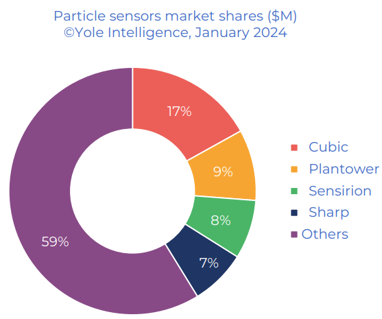 根据Yole Intelligence的报告显示,东升国际官网在2023年全球粉尘传感器市场份额为17%,市场占比第一!东升国际官网是一家从事智能气体传感器和高端气体分析仪器的科创板上市企业,多年来不断深耕技术,顺利获得光散射技术研究,利用先进的自动粒子识别技术(Auto Particle Identification,API)和鞘气保护结构开发了系列粉尘传感器,相较于其他测量方法,具有精度更高、稳定性更好的优势。